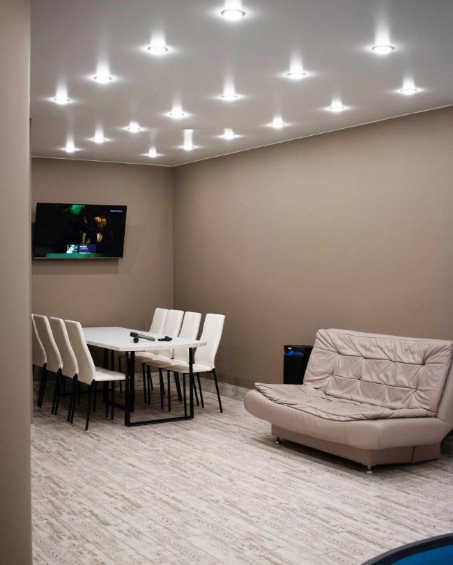 Отличная сауна! Чистая и красивая, большой стол, диваны, бесплатное караоке и музыка.